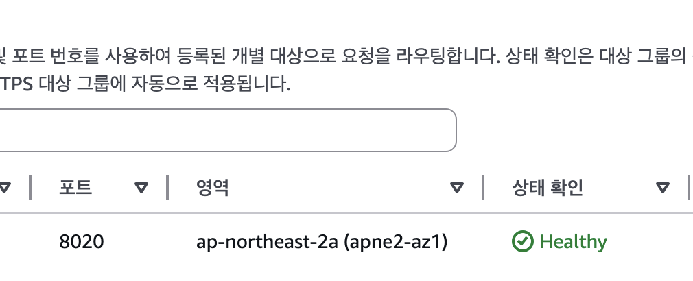 대상 그룹 탭에서도 Healthy 상태가 나오는 것을 확인할 수 있다.
