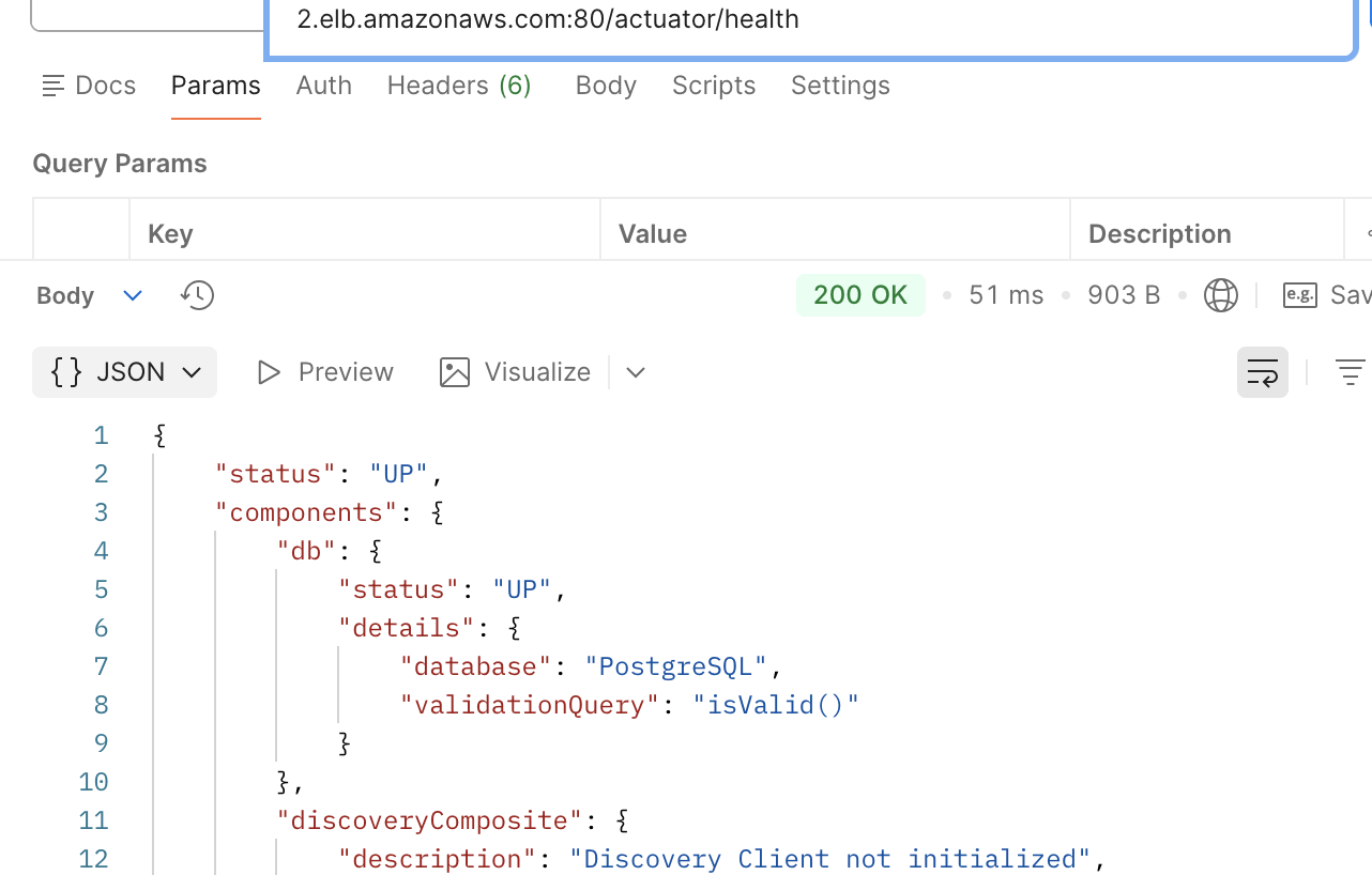 위와 같이 대상 그룹의 Health Check가 Healthy로 되었음에도 실제 Postman을 통해 actuator health check를 했을 경우에 503에러가 나거나, 실제 서비스 API 요청 시 403 에러가 나오고 있는 상황이었다.