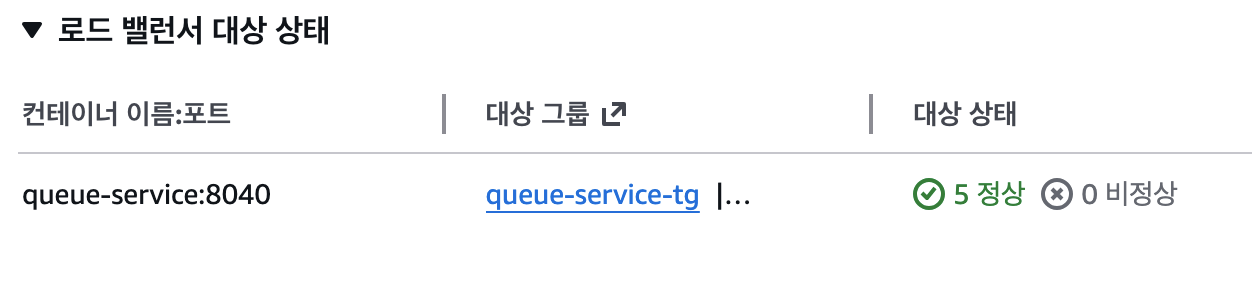현재 Queue 서비스의 대상 그룹에서는 Healthy 상태인 태스크 개수(IP)가 처음에는 1개로 설정되어 있음을 확인할 수 있다.