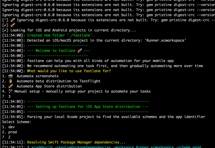 Fastlane 주 사용 목적 선택 및 앱스토어 디스트리뷰션 스킴 선택 (스킴이 2개 이상일 경우)