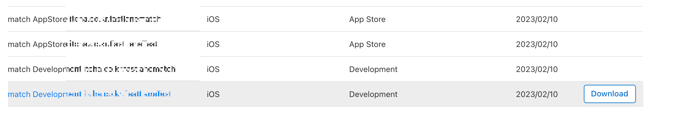 디밸로퍼스 포탈의 Profiles에서 match로 등록된 Provisioning Profile들을 확인할 수 있습니다.