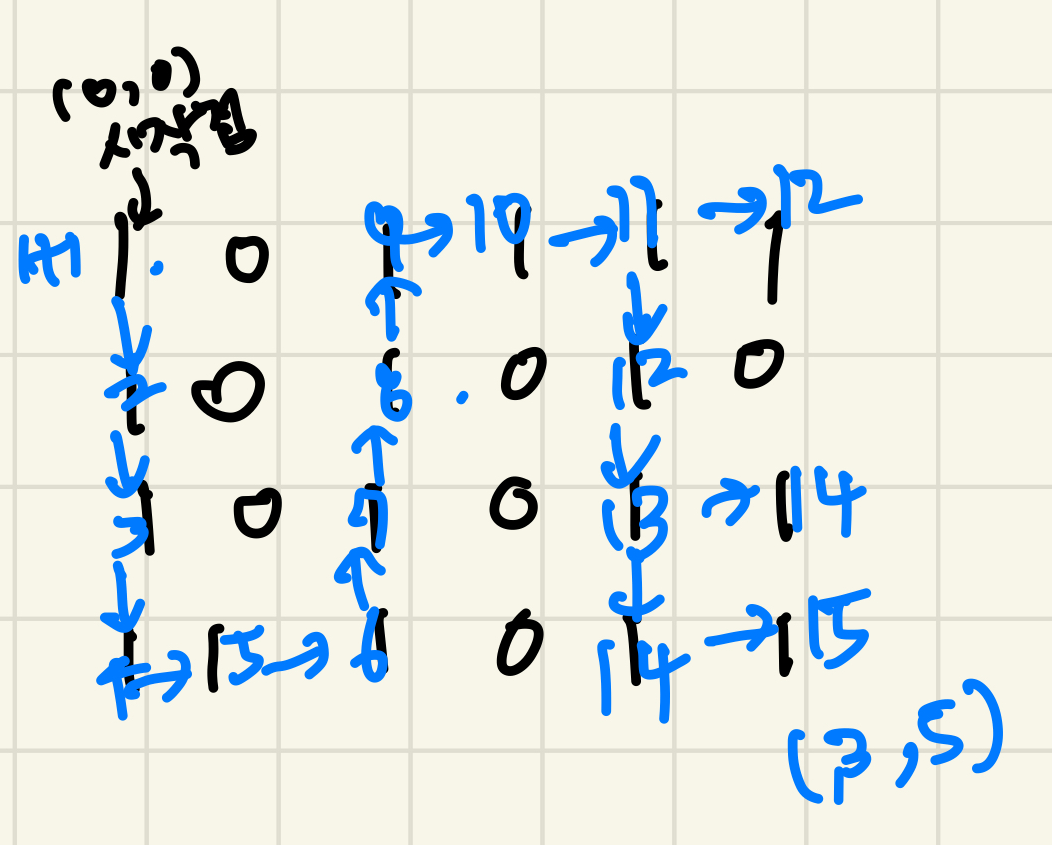 // 방문 가능 조건: 칸의 숫자가 0이 아니어야 하고 아직 방문하지 않은 상태