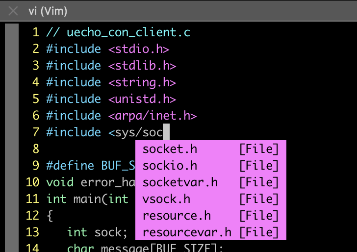 위 과정들을 거쳐서 vim에서의 자동완성 기능을 사용할 수 있게 되었다.