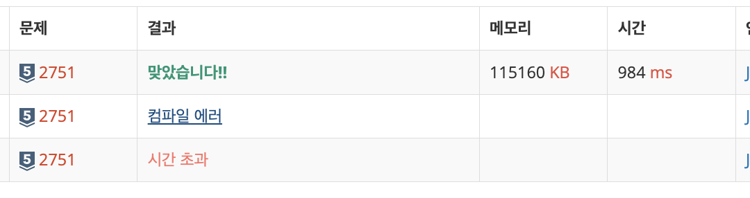 이 둘의 정렬 방식에 따라 시간 복잡도도 달라지기 때문에 시간 제한(위 문제의 경우 2초)에 따라 실패할 수도 있다.