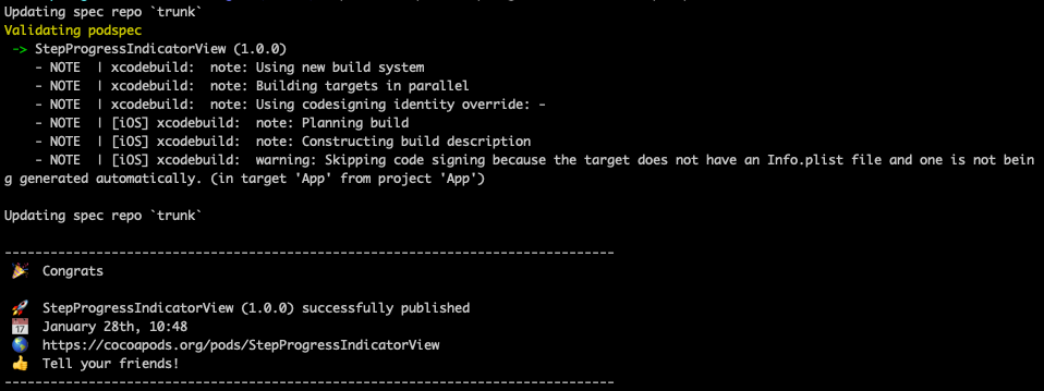 pod lib create StepProgressIndicatorView