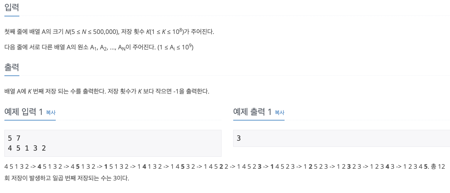 // 배열 A에 K 번째 저장되는 수를 구하는 문제