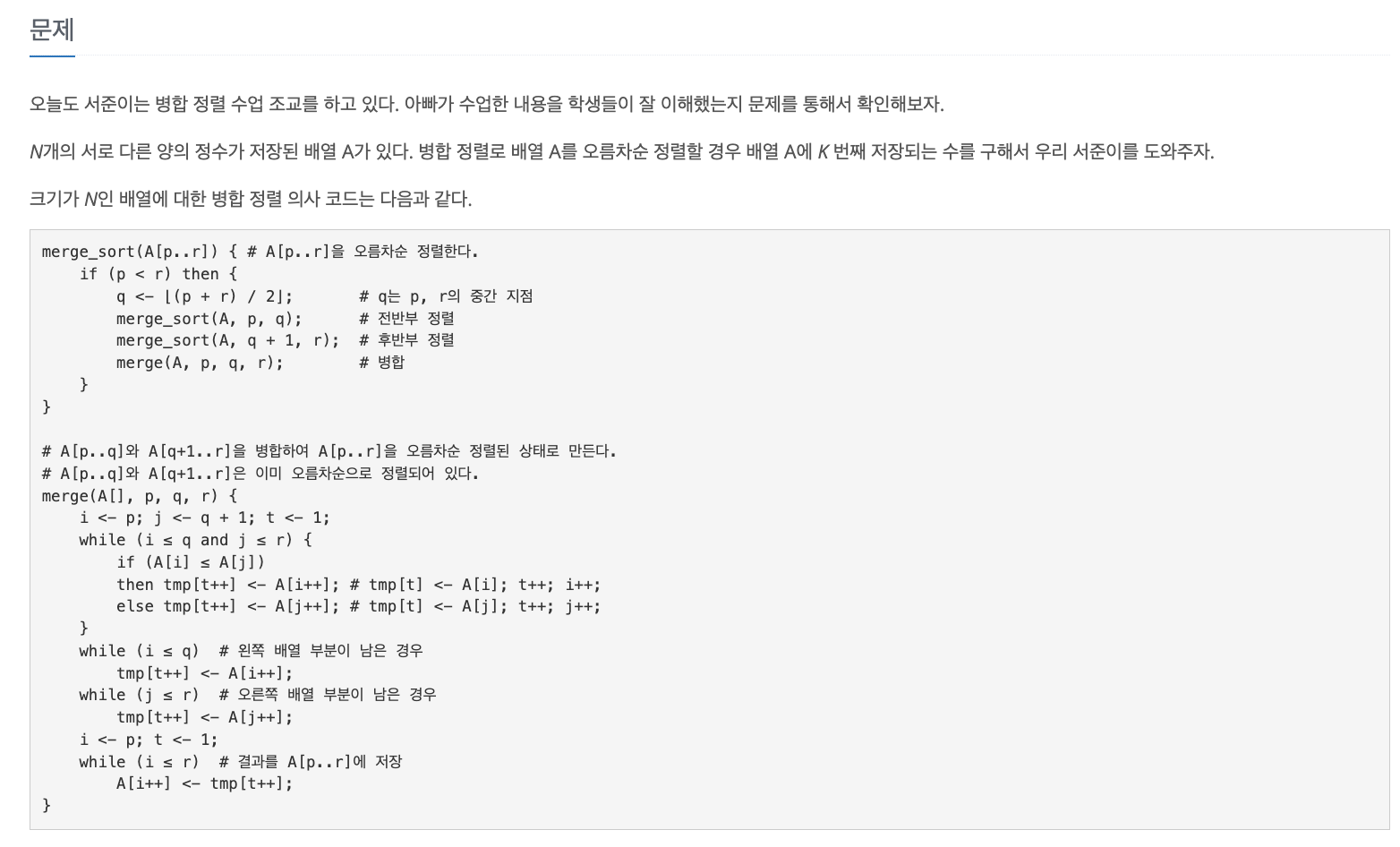 앞서 포스팅한 수 정렬하기2 문제를 풀면서 이해 안가는 부분이 있어 병합 정렬의 개념을 다시 한번 복기하고자 이 문제를 풀이해보았다.
