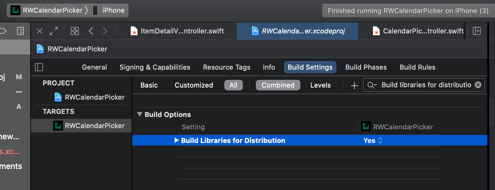 - BUILD_LIBRARIES_FOR_DISTRIBUTION: 배포를 위해 라이브러리가 구축되었는지 확인하고 인터페이스 파일 생성