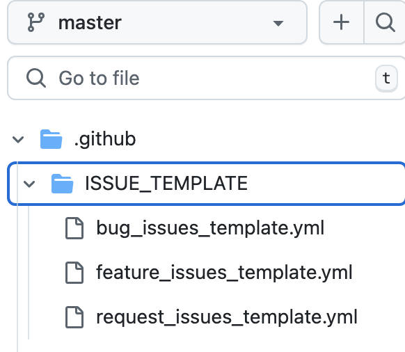 팀에서 이슈 레이블을 별도 지정하여 관리하기로 했는데 해당 레이블명에 따른 이슈 템플릿을 지정하는 부분이다. 기존에 등록해둔 이슈 템플릿은 ISSUE_TEMPLATE 디렉토리에서 확인할 수 있다.